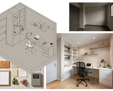 Guiamos al cliente desde una idea hasta una propuesta funcional clara. Se aplicaron principios de orden visual, distribución inteligente y selección de materiales accesibles. El resultado es un entorno que se entiende, se disfruta y tiene sentido desde lo cotidiano.