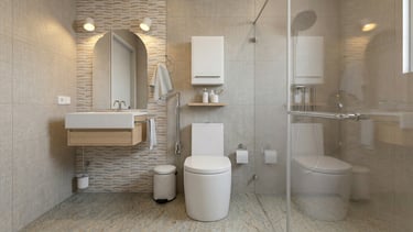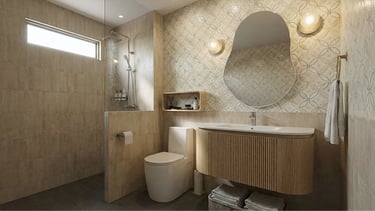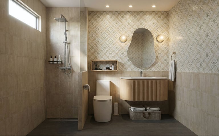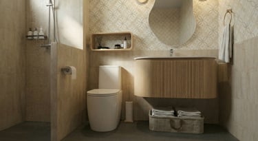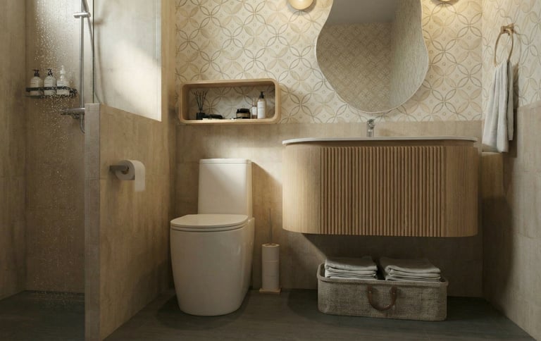 La pesadez visual convierte el baño en un espacio de paso. Optimizamos cada centímetro con muebles curvos y cerámica geométrica. Transformamos un lugar anticuado en un marco de calma que realza tu ritual de bienestar matutino. Reinventa tu espacio.