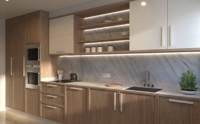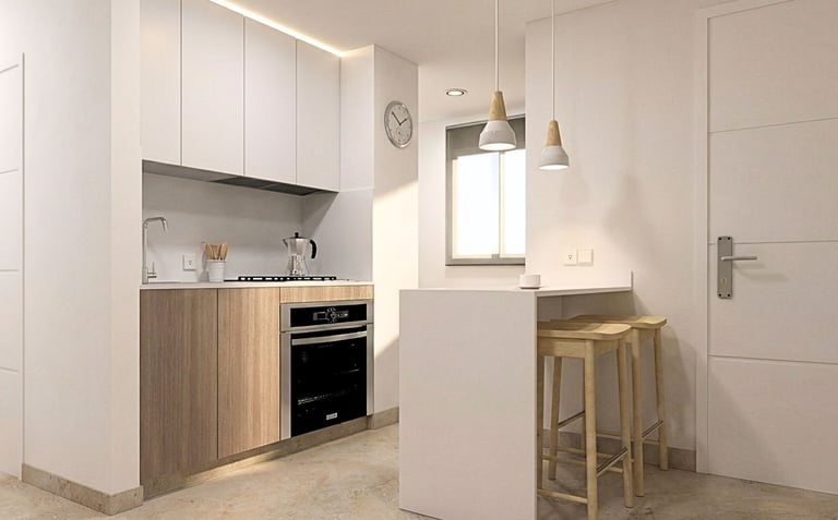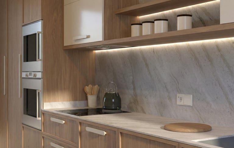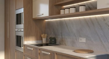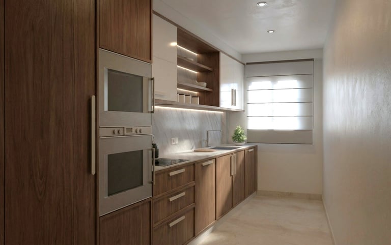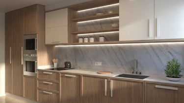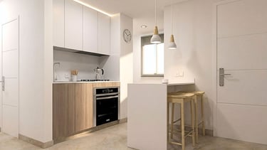 El ruido visual en la cocina agota tu energía. Eliminamos la saturación con electrodomésticos integrados y roble natural. Funcionalidad impecable para que cada tarea fluya sin esfuerzo. No es una cocina, es una herramienta de vida. Optimiza tu rutina.