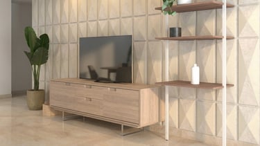 Un suelo frío no invita a vivir. Equilibramos la resistencia del porcelánico con la calidez del roble y acentos vegetales. Una conexión fluida entre interior y exterior diseñada para suavizar la luz y nutrir la experiencia sensorial. Viva el equilibrio.