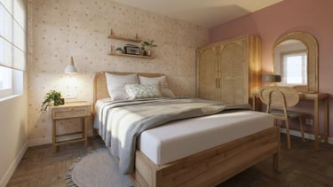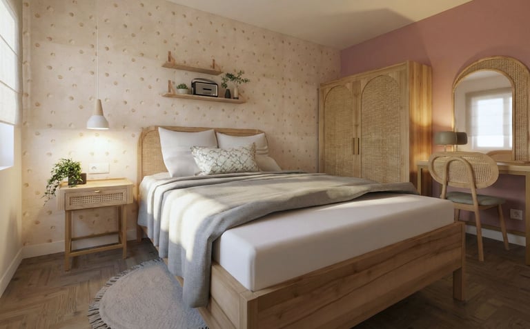 Dormir no es lo mismo que descansar. Recuperamos la esencia de tu estancia mediante roble claro y lino lavado. Una atmósfera de confort térmico diseñada para regenerar tu energía y proteger tu identidad personal. Descansa de verdad.